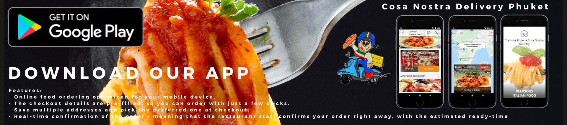 Cosa Nostra Delivery Italian family restaurant is ready for home service delivery near these areas: Chalong, Rawai, Kata, Karon.